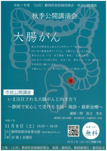令和7年度 静岡県放射線技師会 県民公開講座『秋季公開講演会-大腸がん-』