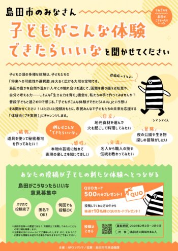 NPOシマシマ『島田市のみなさん“子どもがこんな体験できたらいいな”を聞かせてください』