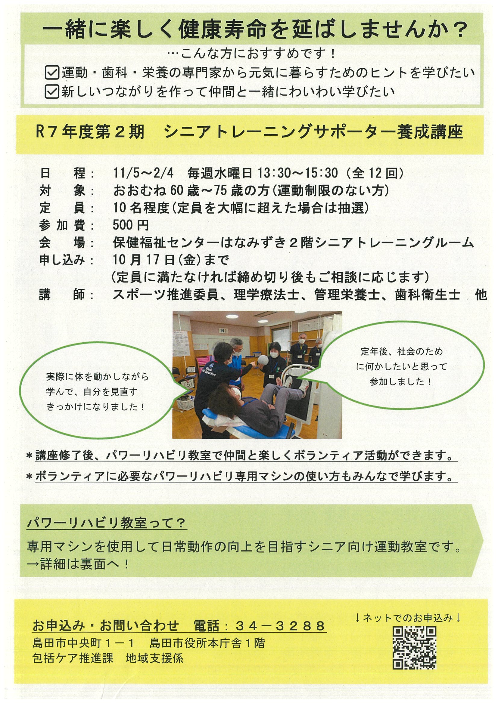 令和7年度第2期『シニアトレーニングサポーター養成講座』