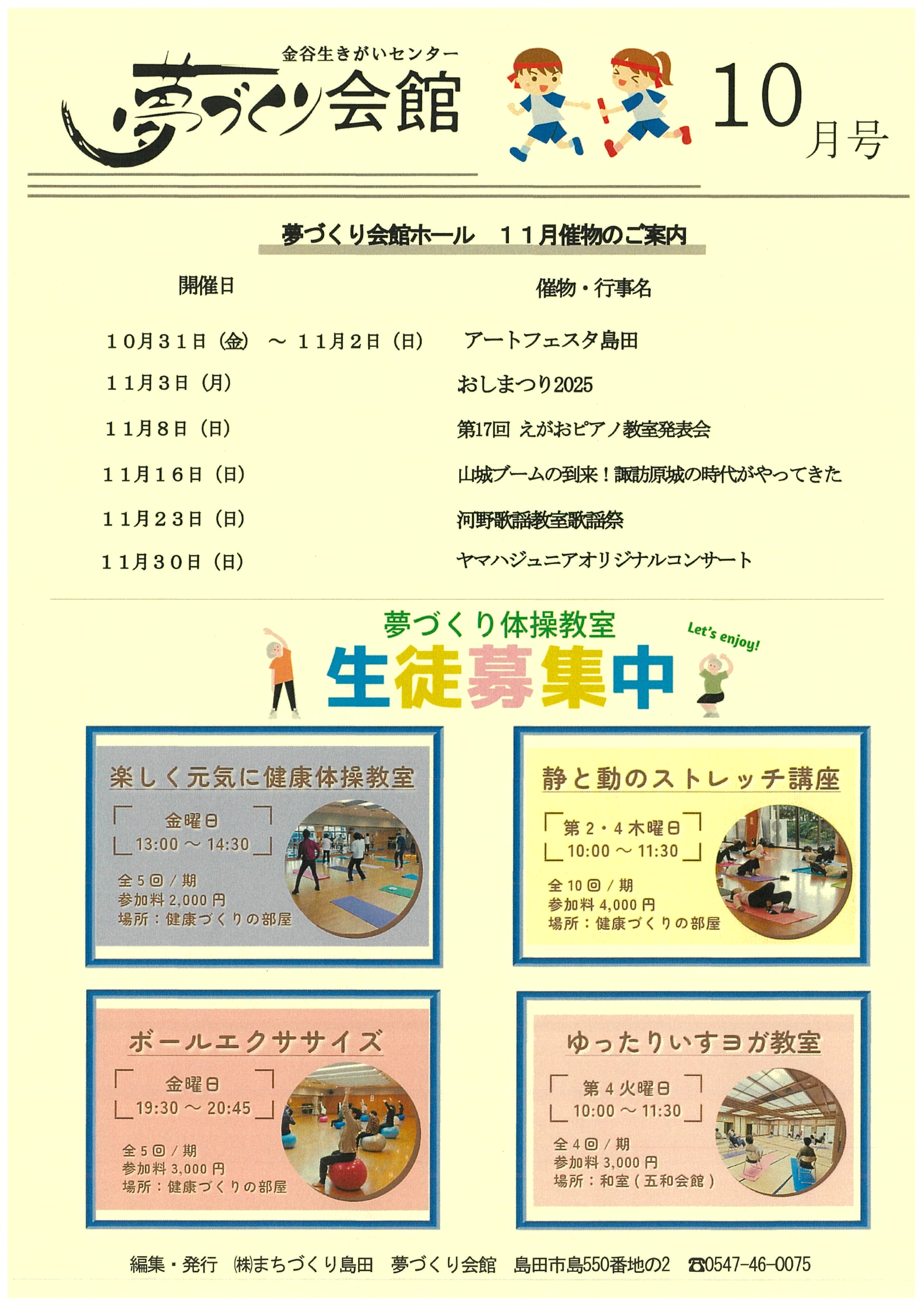夢づくり会館「夢づくり会館ホール 11月催物のご案内」
