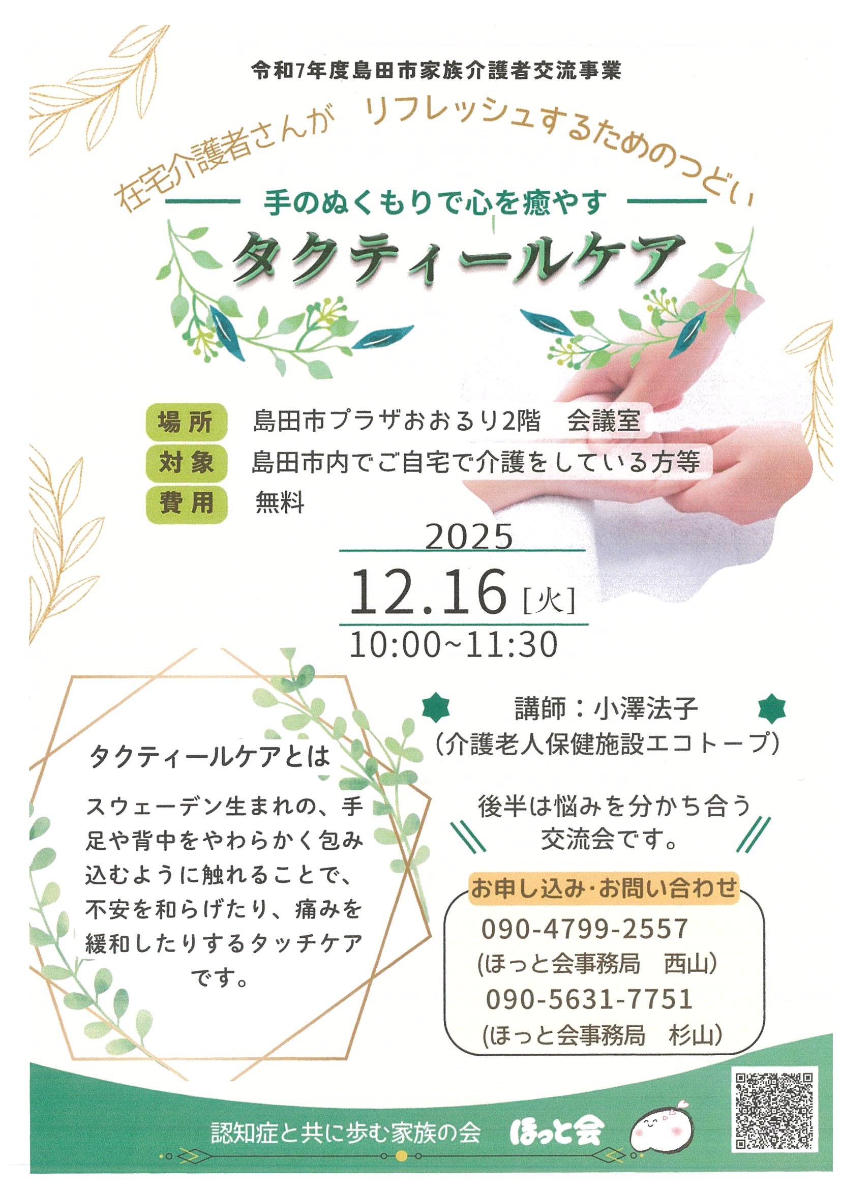 令和7年度島田市家族介護者交流事業『手のぬくもりで心を癒す タクティールケア』