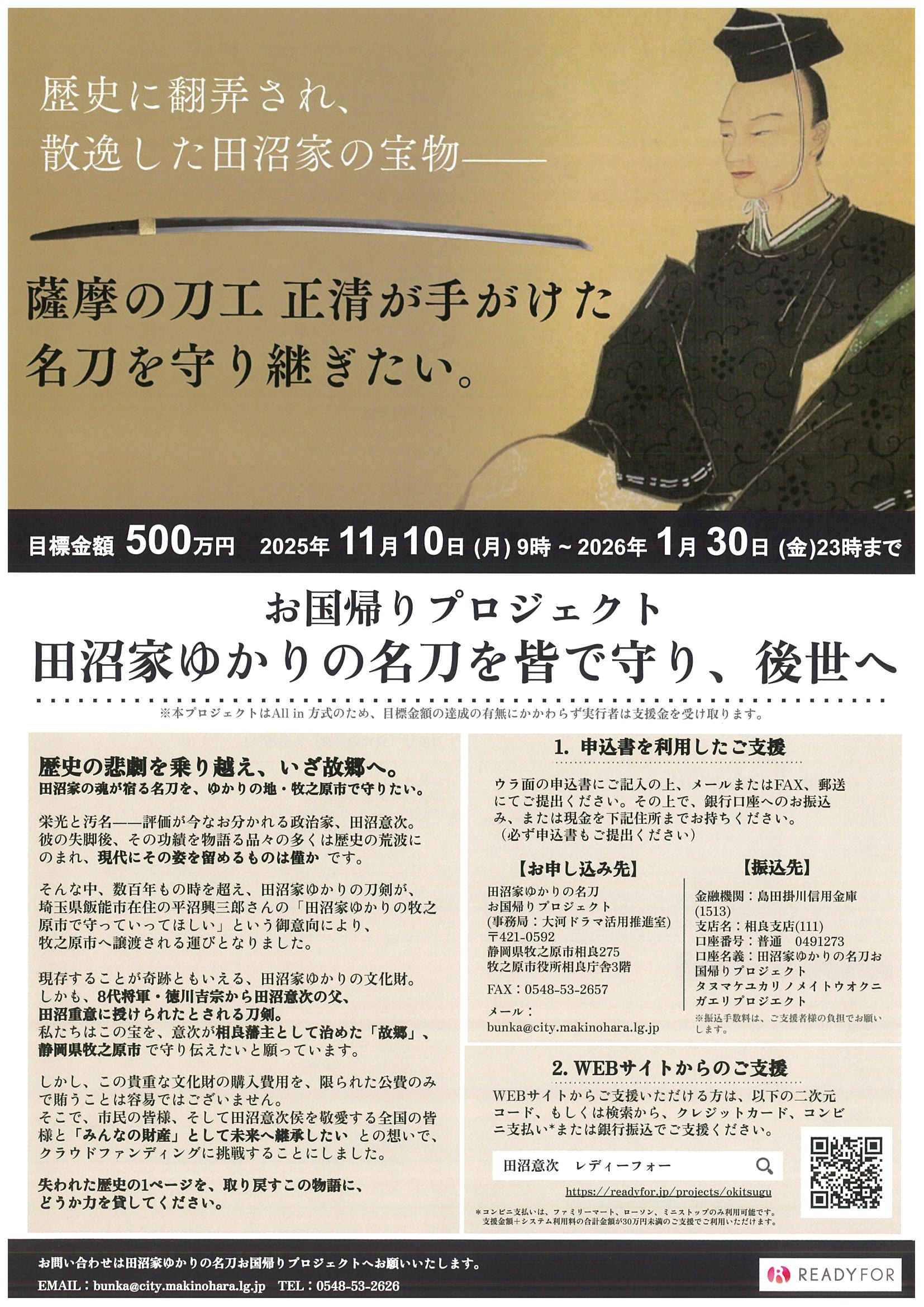 お国帰りプロジェクト「田沼家ゆかりの名刀を皆で守り、後世へ」