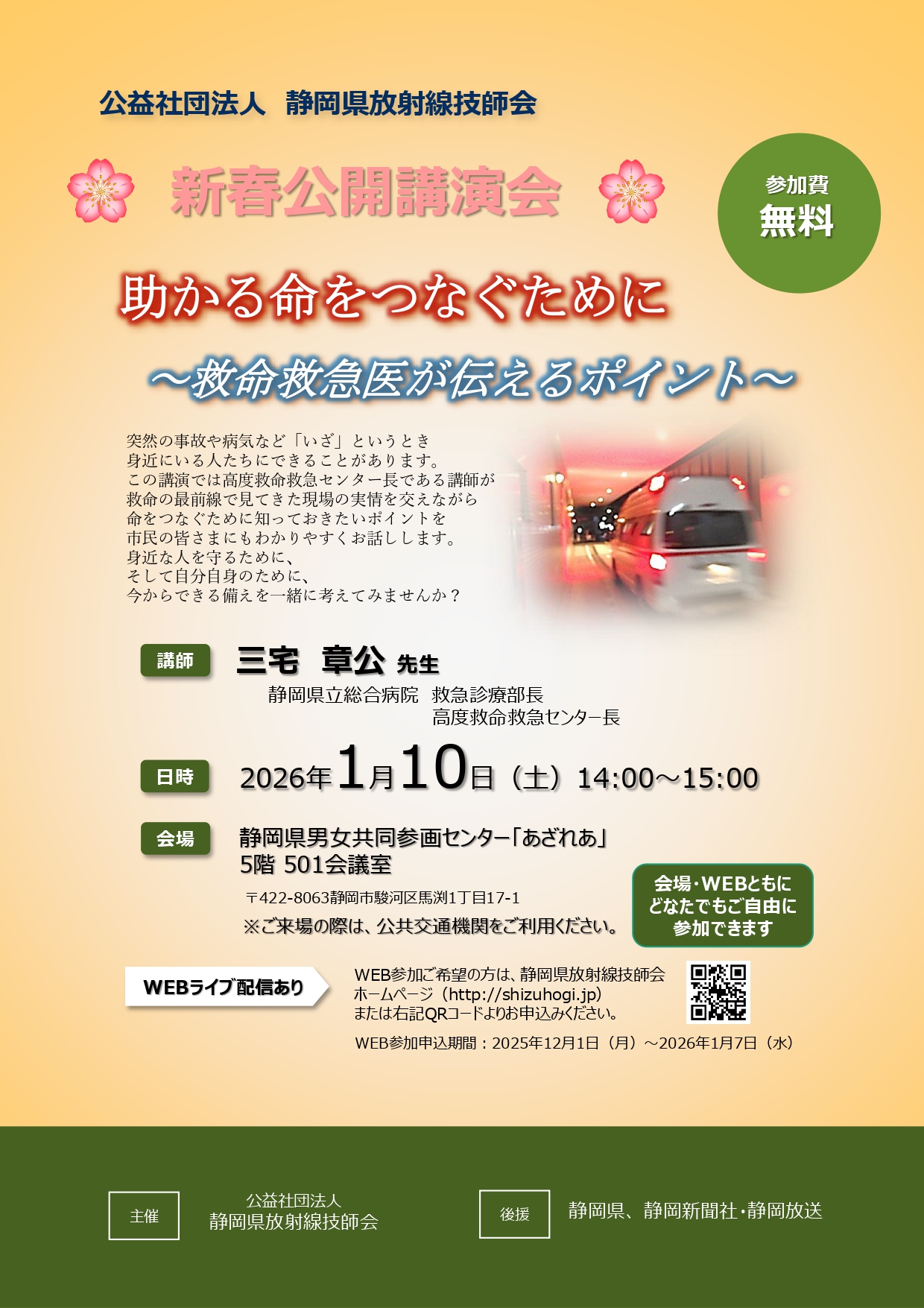 静岡県放射線技師会『新春公開講演会 助かる命をつなぐために~救命救急医が伝えるポイント~』