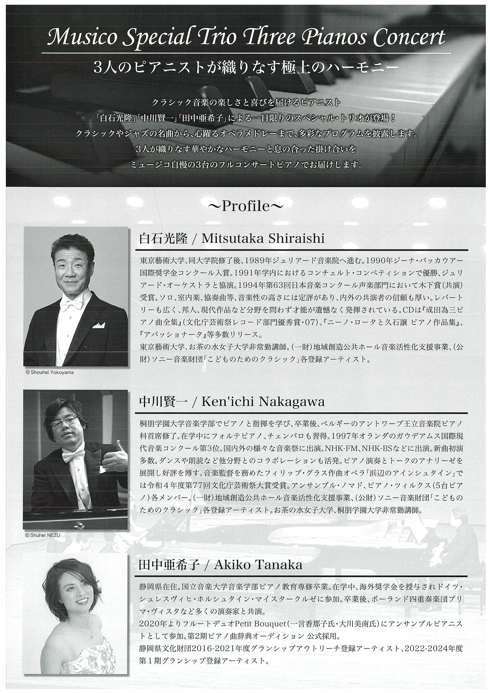 3台ピアノコンサート 3人のピアニストが織りなす極上のハーモニー