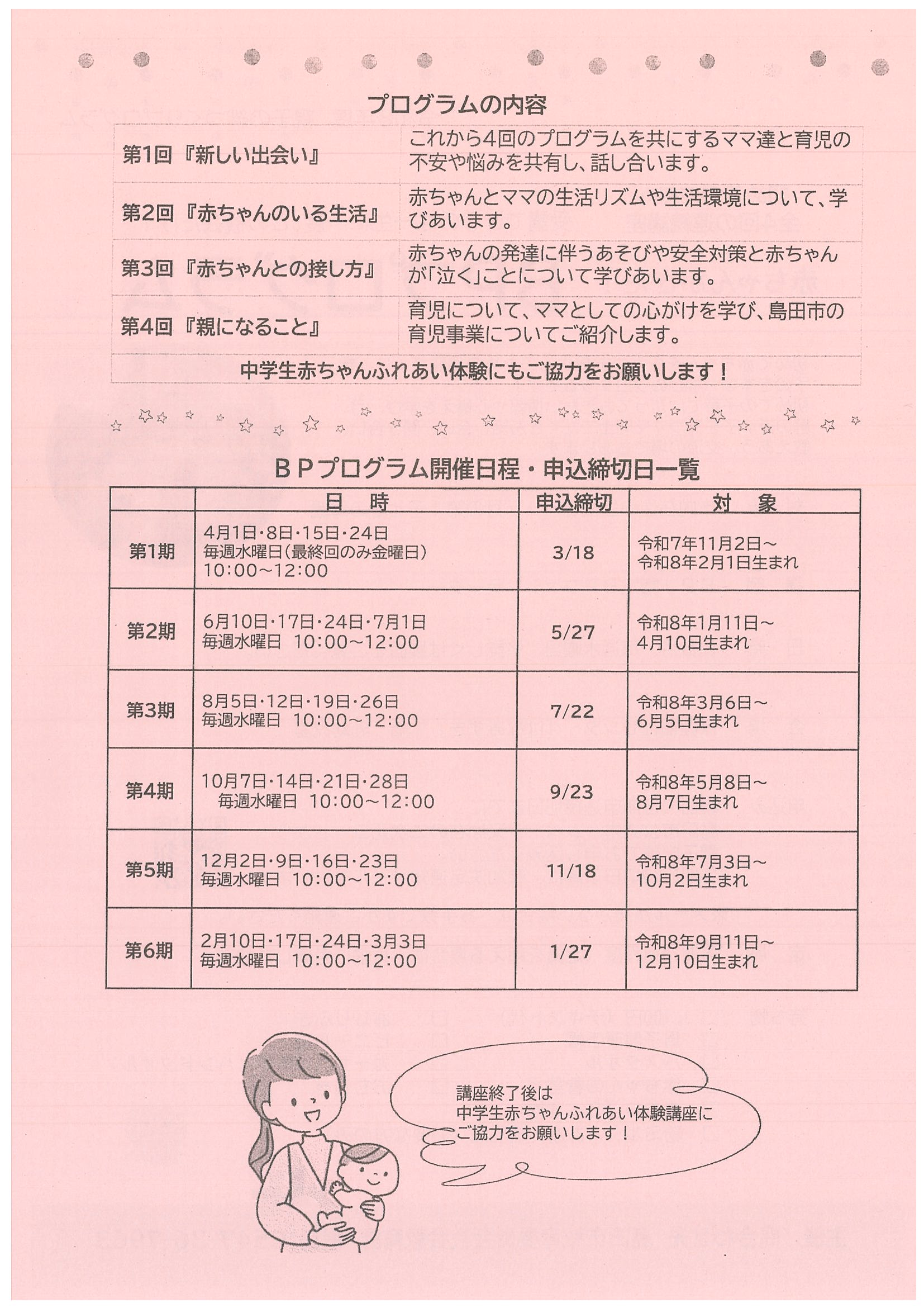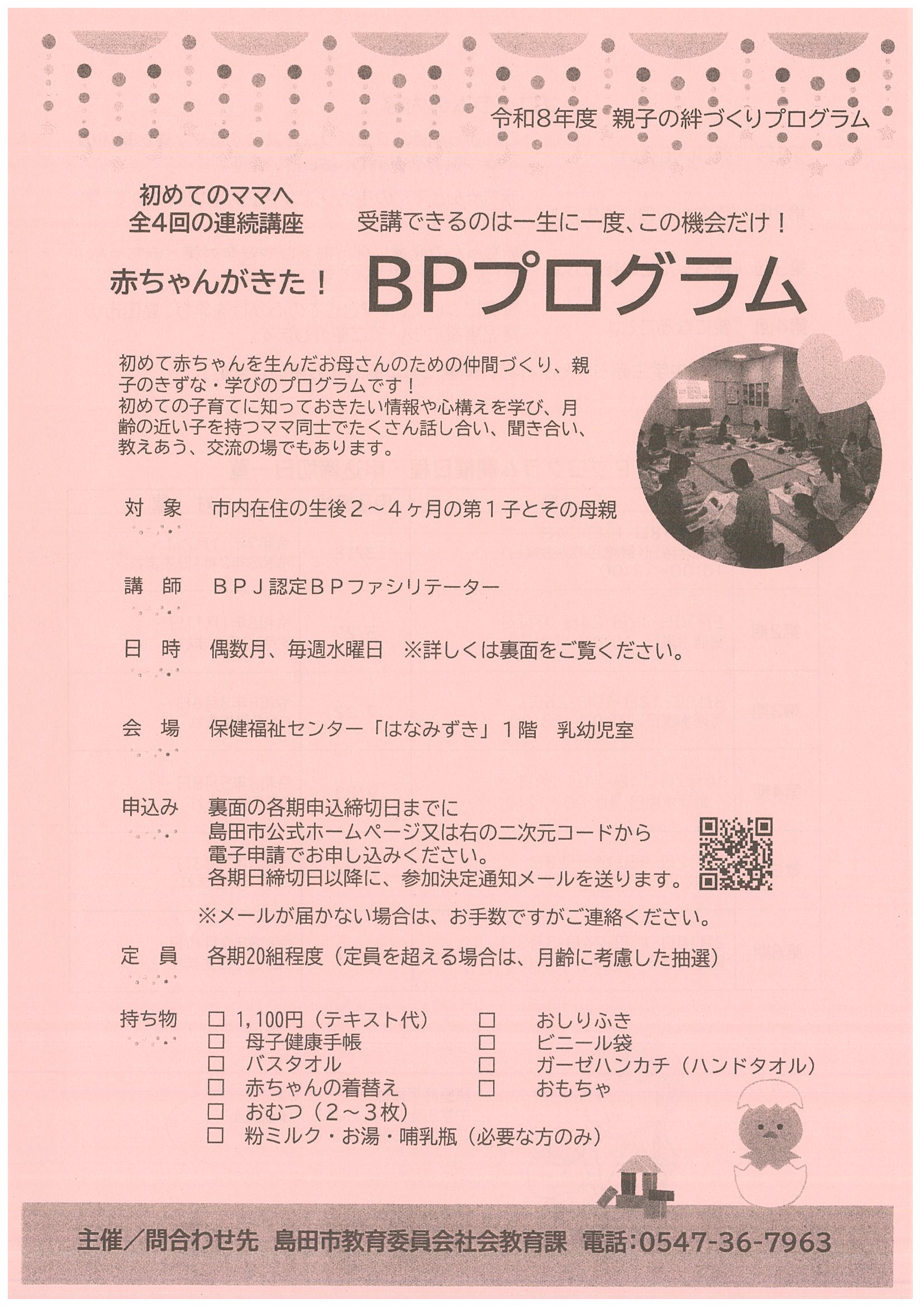 初めてのママへ「赤ちゃんがきた!BPプログラム」