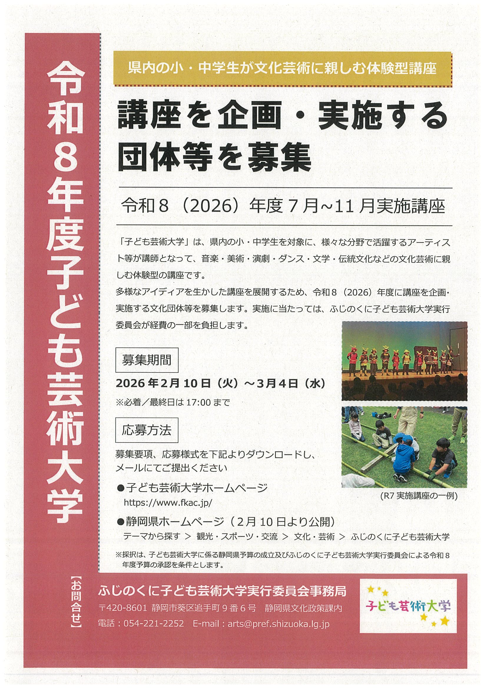 県内の小・中学生が文化芸術に親しむ体験型講座 講座を企画・実施する団体等を募集!