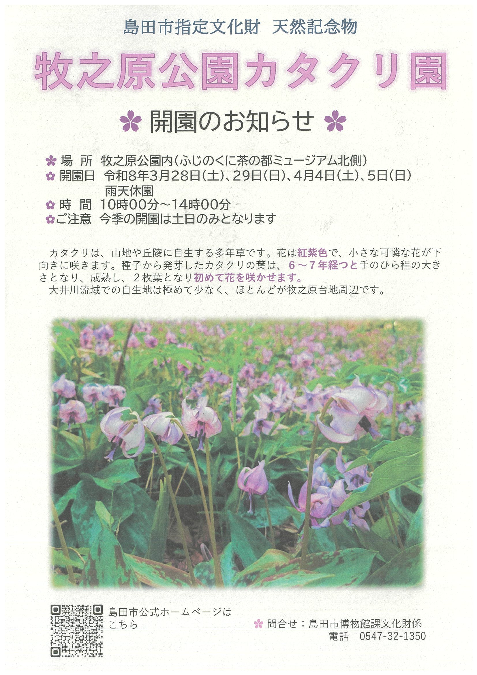 牧之原公園カタクリ園 開園のお知らせ