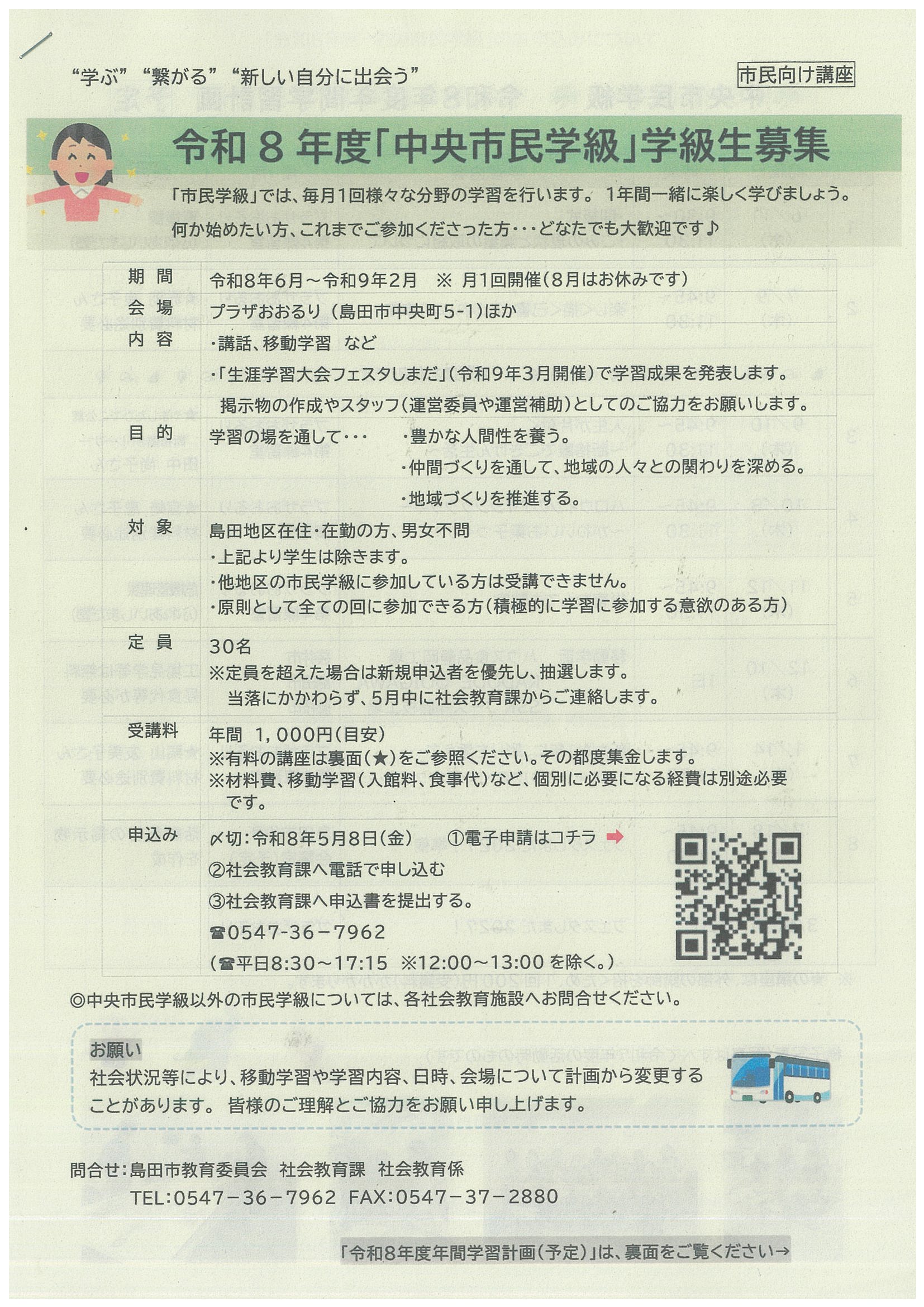 「中央市民学級」学級生募集