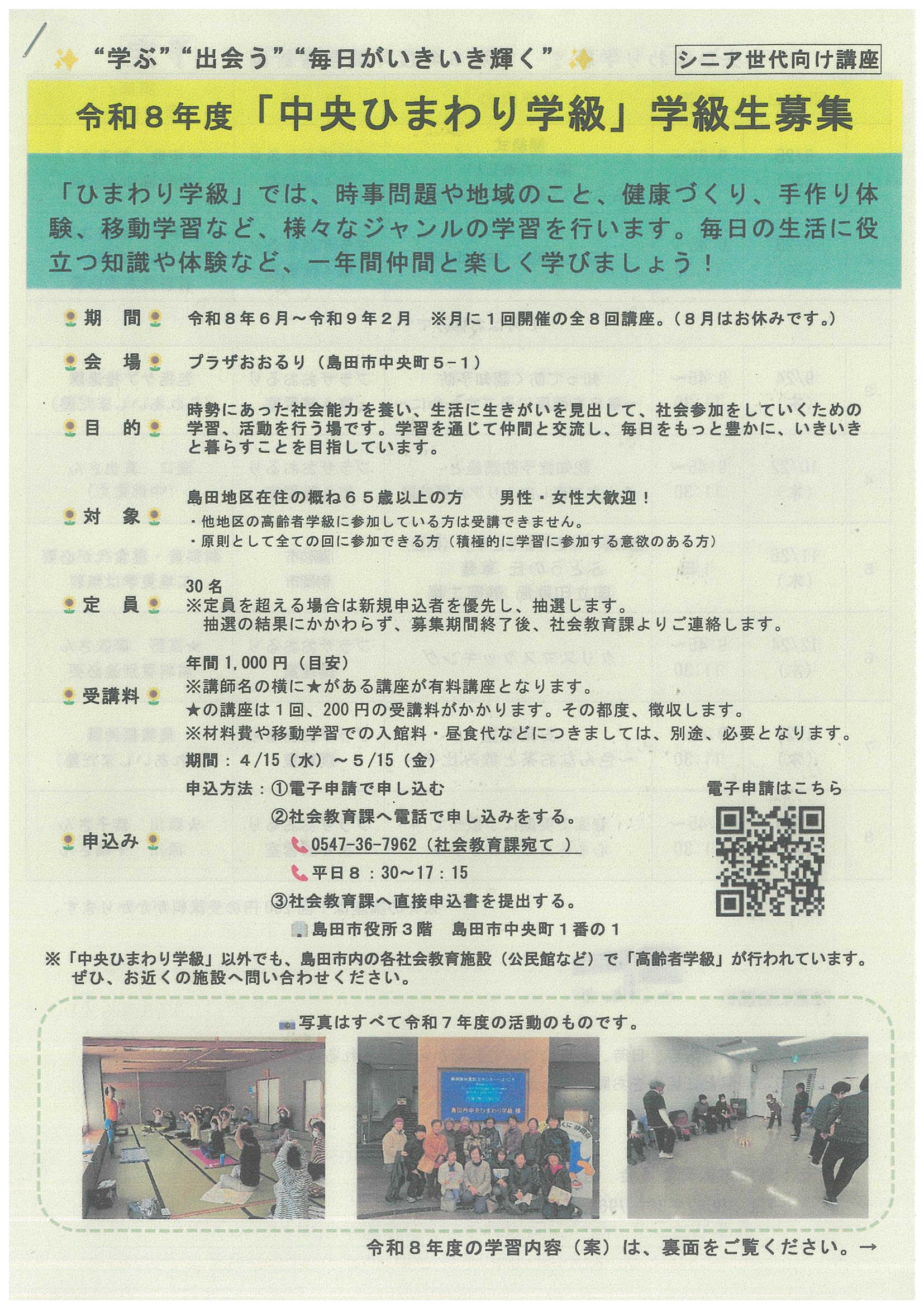 「中央ひまわり学級」学級生募集