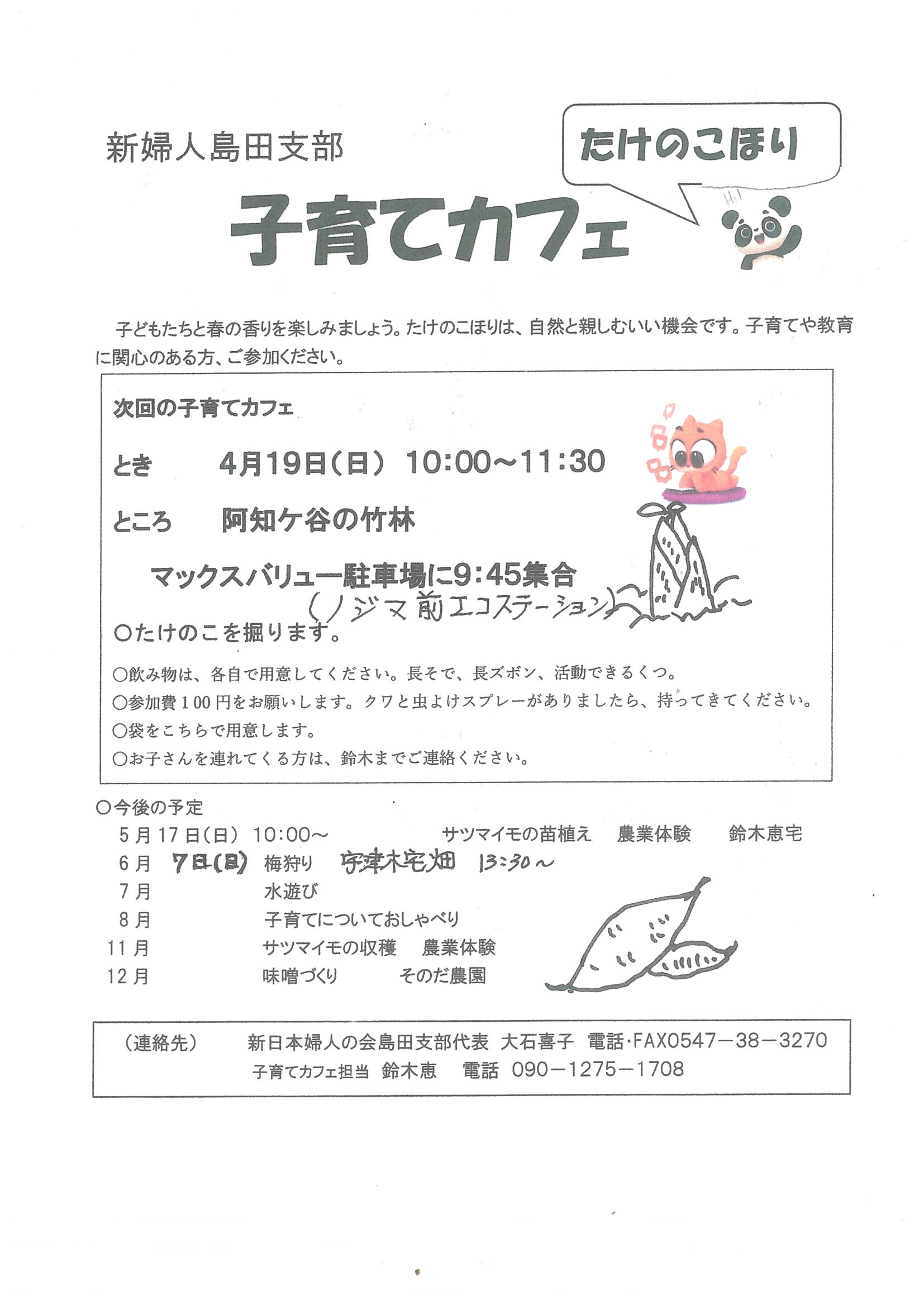 新婦人島田支部 子育てカフェ~たけのこほり~