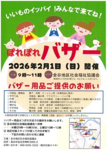 2月1日開催!ぽれぽれバザー「バザー用品ご提供のお願い」