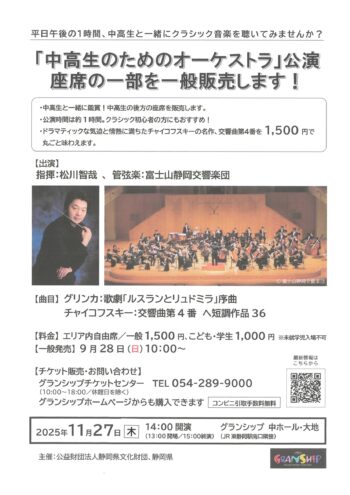 「中高生のためのオーケストラ」公演 座席の一部を一般販売します!