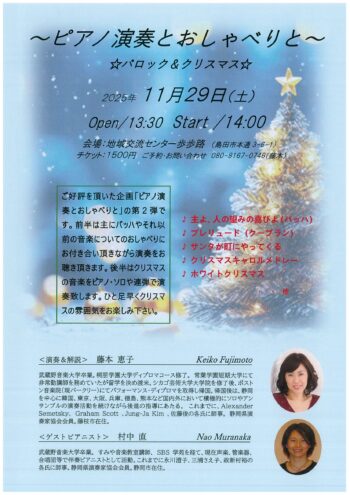 ~ピアノ演奏とおしゃべりと~ ☆バロック&クリスマス☆